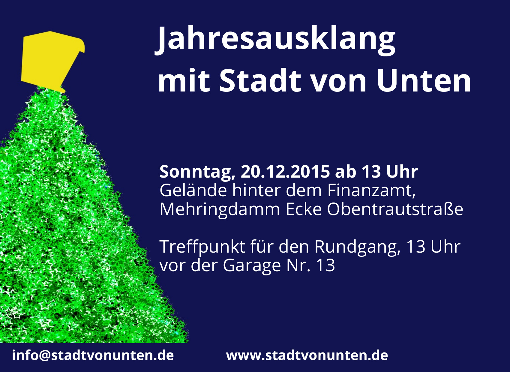 An dieser Stelle erinnern wir euch nochmal an unseren morgigen Jahresausklang. Solltet ihr morgen nicht dabei sein, euch ein paar schöne Feiertage und guten Rutsch.